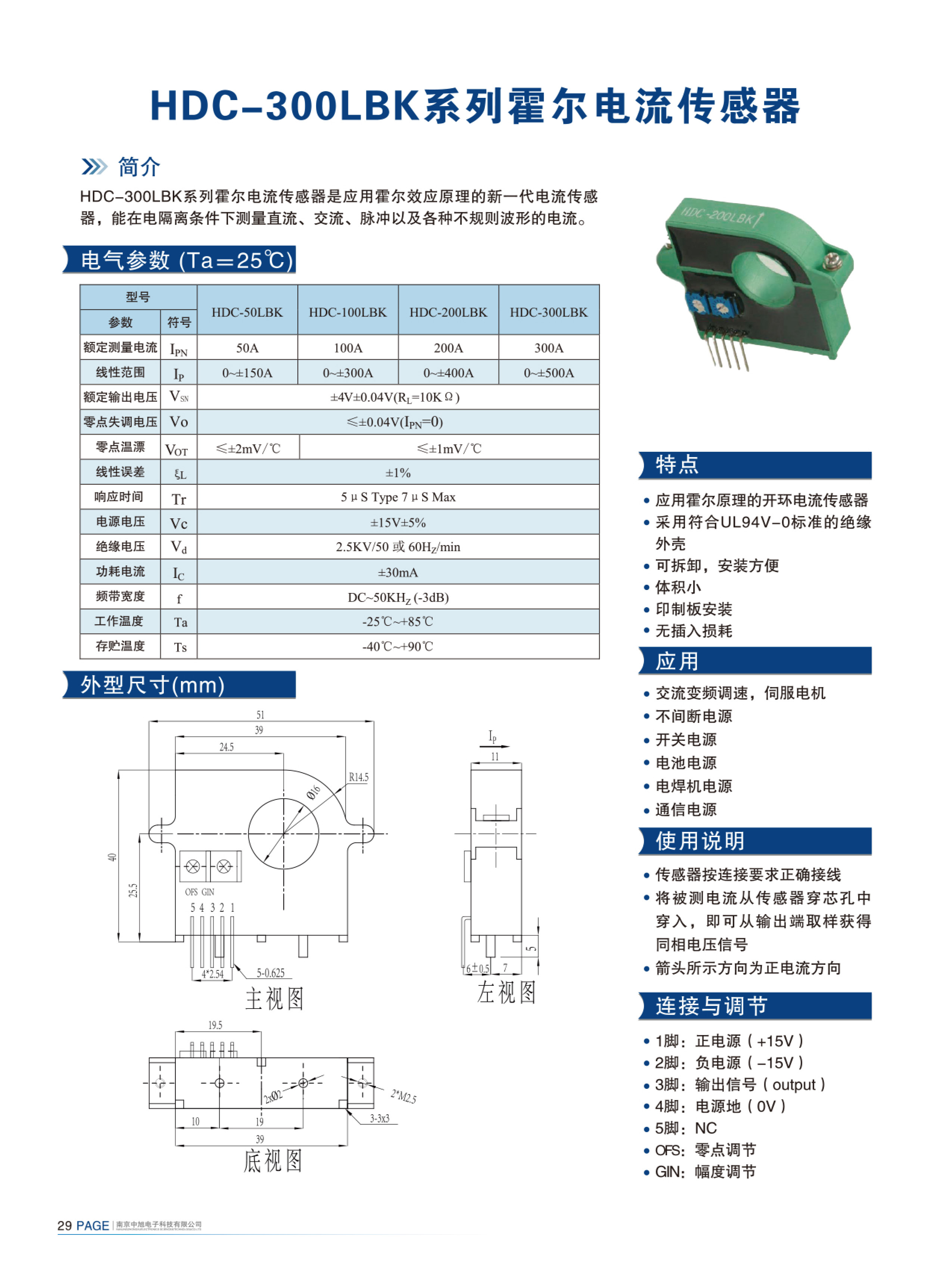 HDC-300LBK系列霍爾電流傳感器是應(yīng)用霍爾效應(yīng)原理的新一代電流傳感器,能在電隔離條件下測(cè)量直流、交流、脈沖以及各種不規(guī)則波形的電流。